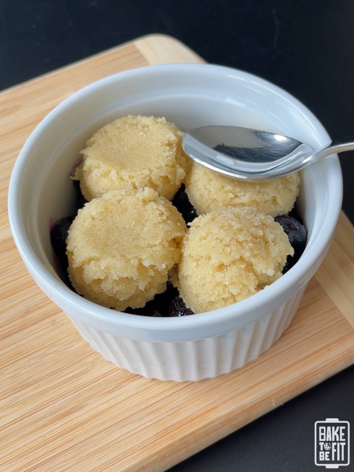Allulose gives this healthy blueberry cobbler a clean, sugar-like taste without the carbs. You can also use monk fruit or erythritol if you prefer.