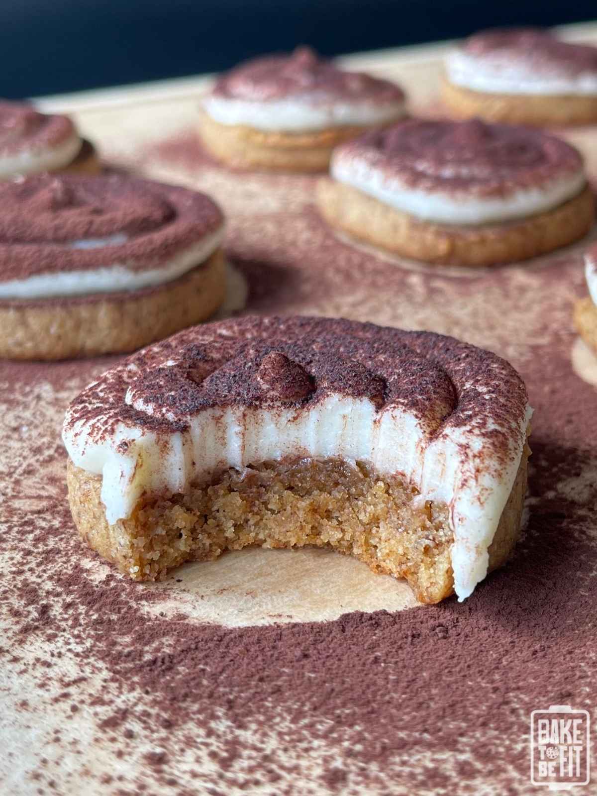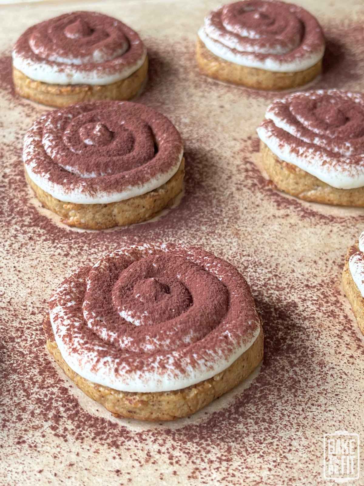 A light dusting of unsweetened cocoa powder finishes the cookies with that classic tiramisu look.
