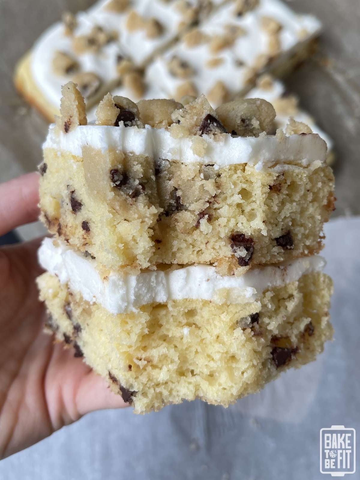 Cut into squares and enjoy every bite of cake, frosting, and cookie dough together.